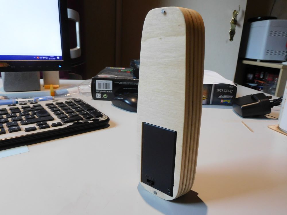 Stromversorgung über 3x1,2V AAA-Akku, auf 5V mittels deines kleinen StepUp-Boosters angehoben.