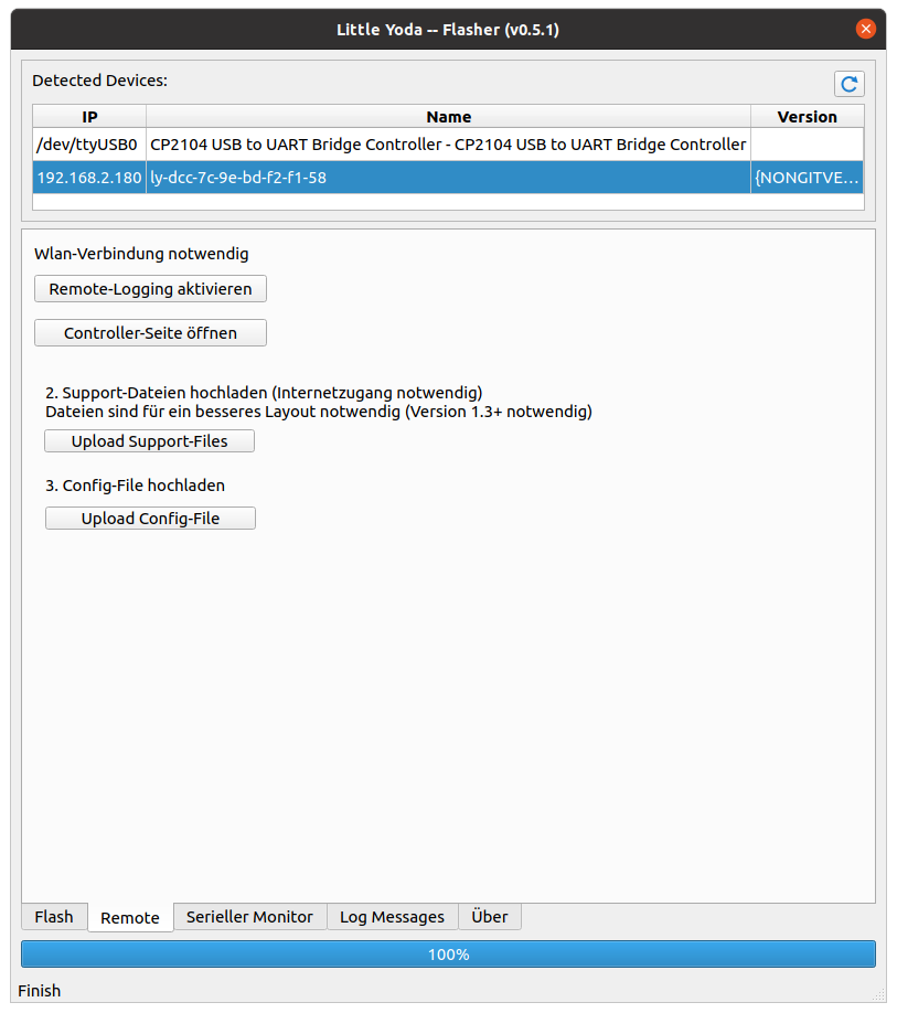 Ich benutze den Flasher Linux_littleyoda_flasher_old_Glib (0.5.2 vom GitHub).